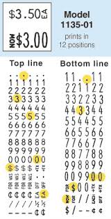 Monarch 1135-01 Two Line labeler to use for pricing or coding, both top and bottom lines have 6 printing positions available.